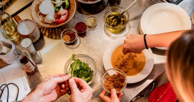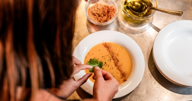 India was an English colony for over 300 years, leaving a significant mark on English culinary culture. Did you know that, according to Indians, the best Indian restaurants in the world are in Great Britain? This time, we will explore what is cooked in these restaurants and how Western influences have shaped the dishes. We'll follow a Western dining sequence: starting with soup, followed by two types of curry. Our main star will be Chicken Tikka Masala, the most British Indian classic, and our other main dish will be a veggie balti, a vegetable curry that's less overcooked, served with cumin rice. To finish, we'll have the iconic dessert: Mango Lassi.