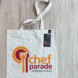 Elöl Chefparade logoval, hátul "get cooking, start living" szlogennel szitanyomott, középszürke unisex póló. S-XXL méretben. Szakácsaink is ebben főznek.