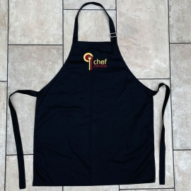 A főzőkurzusokon is használt, Chefparade logoval hímzett kötény. Univerzális "L" méret (bruttó hossza 80cm) - minden felnőttre jó. Állítható csattal a nyakpánti résznél.